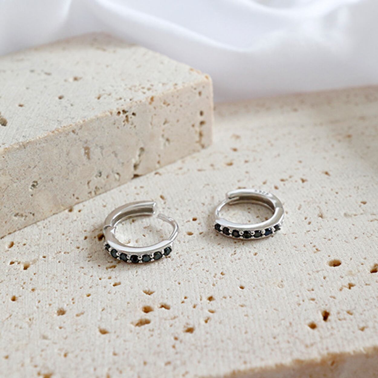 シルバーピアスにストーンを埋め込んだデザインフープピアス