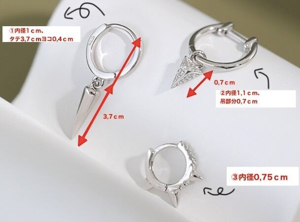 デザインが異なるトライアングルフープピアスシリーズ